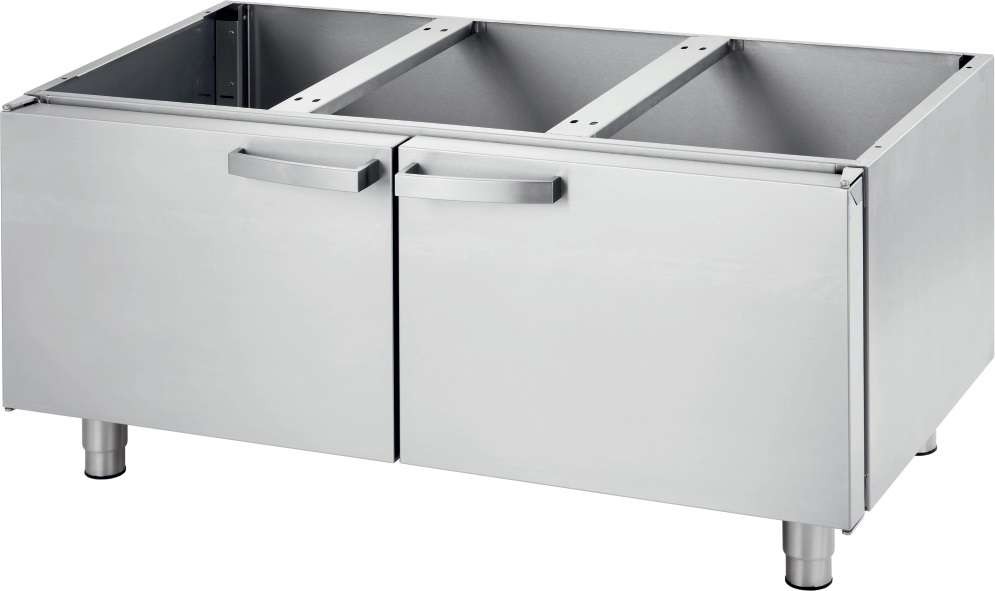 • Mueble bajo con puertas fabricado en acero inoxidable.