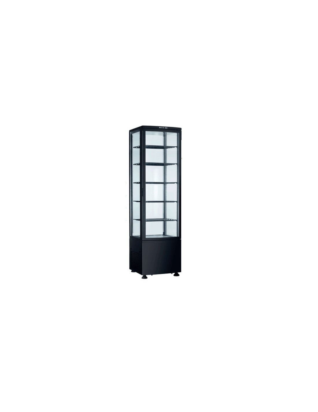 Expositor iluminado con los laterales en vidrio y puerta para auto-servicio.