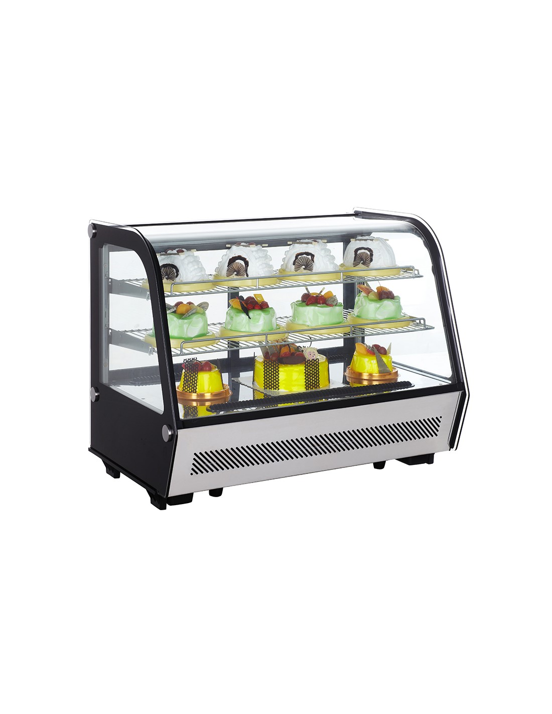 Vitrina refrigerada de cristal curvo.