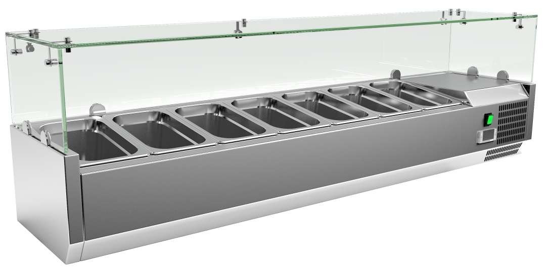 Vitrina 7 cubetas GN1/4 con Cúpula de Vídrio de 1500 x335 x440h mm PEKIN VRX1500330FG