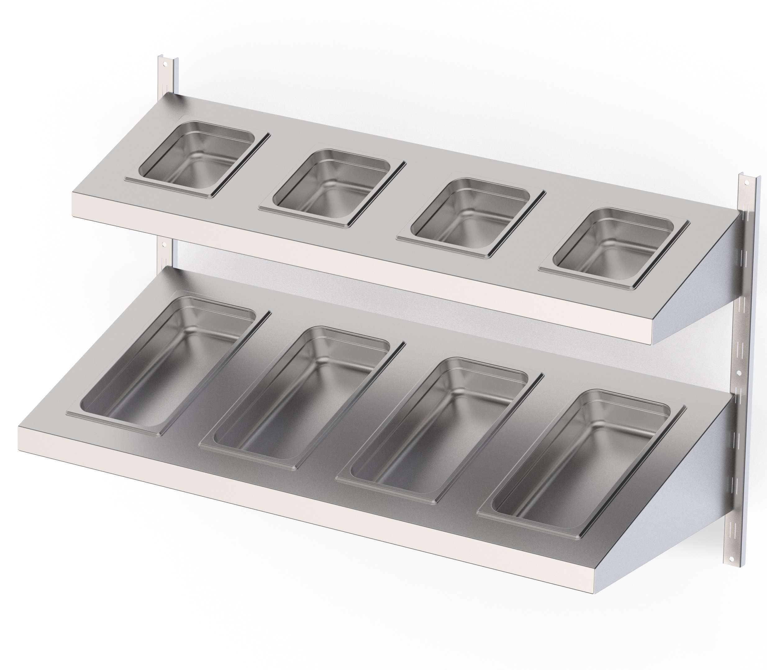 Estantería Mural Acero Inoxidable Con Estante Inclinado Cubeta GN Para Cremallera Mural Fondo 400 1000×400 mm AWSSS100400. -3,336kg