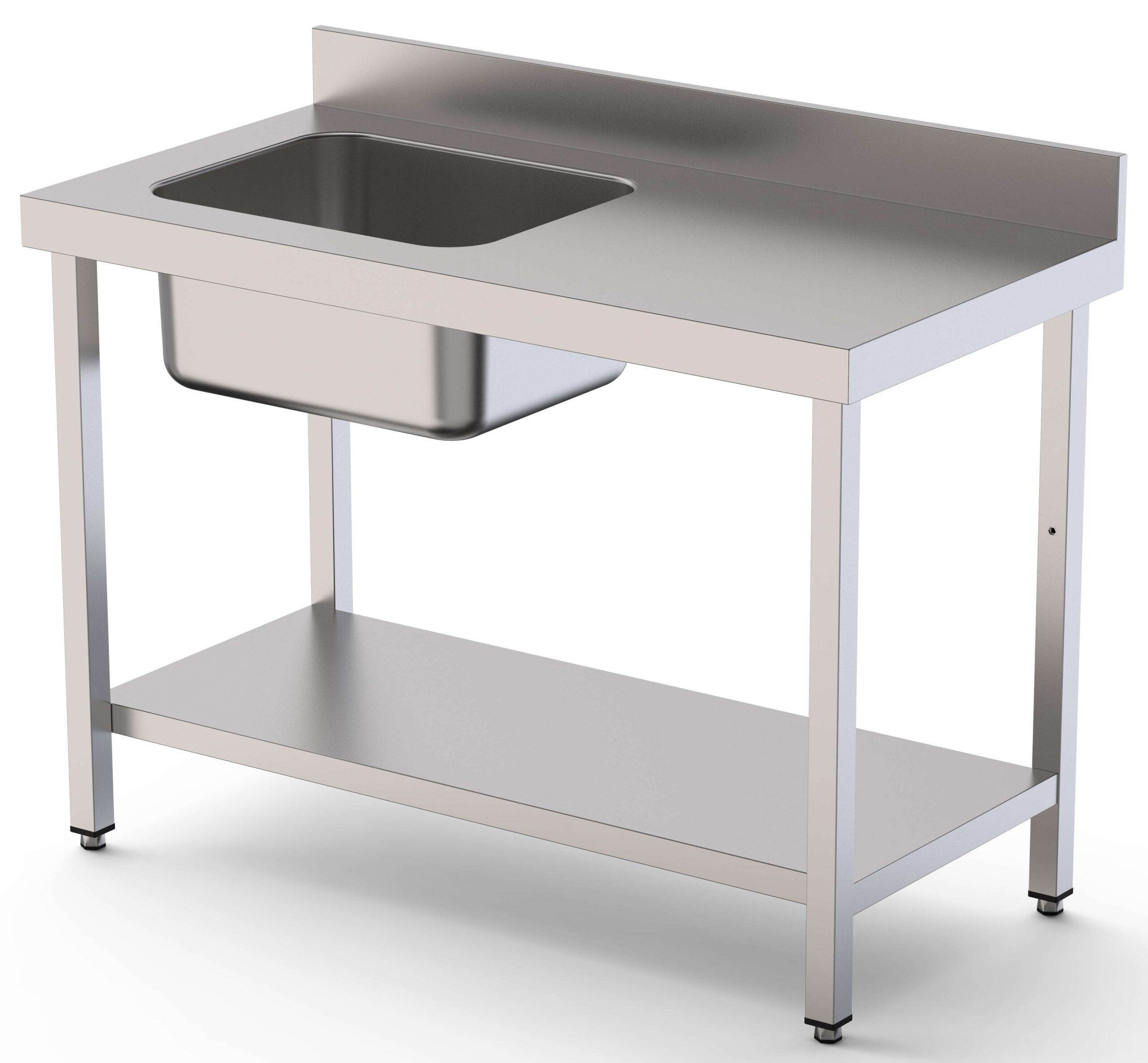 Mesa de Trabajo Acero Inoxidable Mural Con Estante y Con Cubeta a la izquierda 2800x700x850h mm WTW17028LB1
