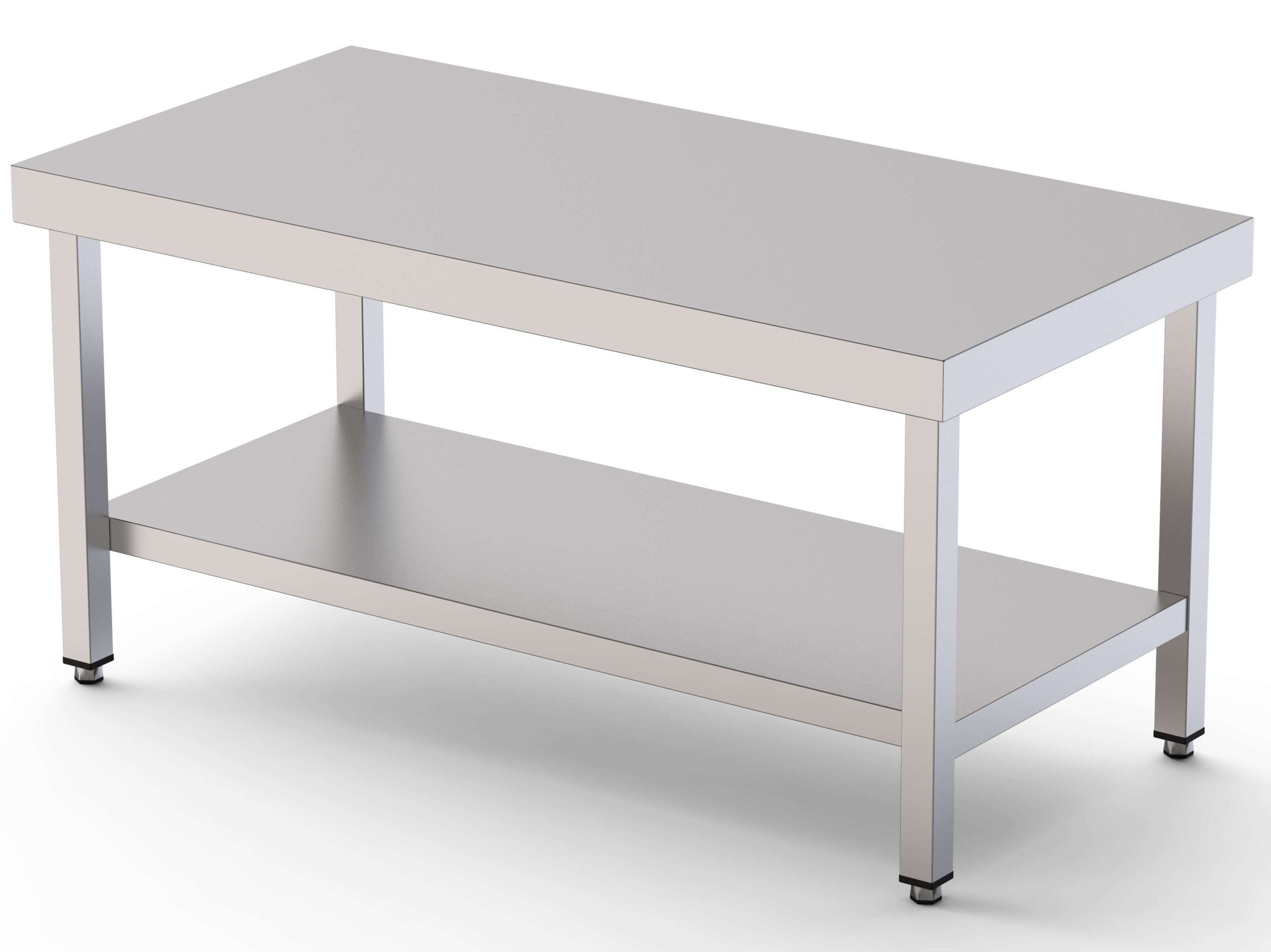 Mesa de Trabajo Acero Inoxidable Baja Central Con 1 Estante 700x700x600h mm WTC270070S1
